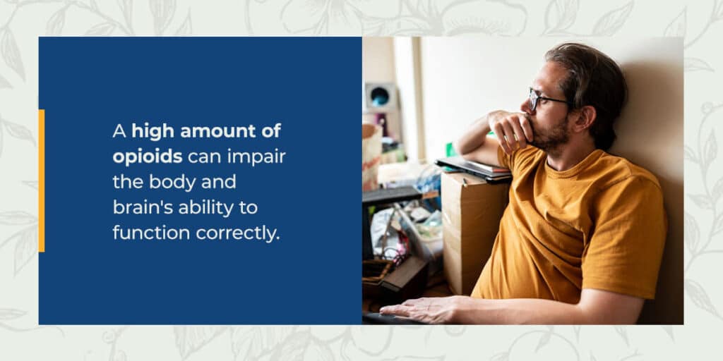 A high amount of opioids can impair the body and brain’s ability to function correctly. This can sometimes cause slow breathing or a decrease in oxygen due to the drug’s sedating effect, leading to significant risk. Although not all overdoses are fatal, they can result in death if not treated immediately.