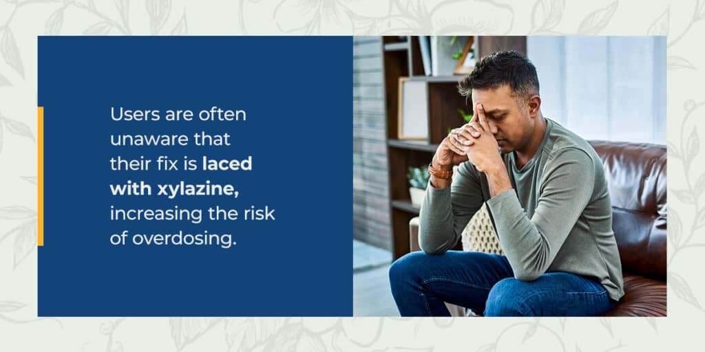 There are numerous serious side effects and dangers associated with xylazine abuse. The biggest one is death due to overdose. Users are often unaware that their fix is laced with xylazine, increasing the risk of overdosing.